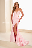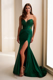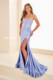 Captivate every eye in this stunning mermaid gown designed for unforgettable moments. The pointed sweetheart neckline features delicate illusion lace and shimmering stone accents that catch the light beautifully. A sculpted corset bodice with lace-up back creates an impeccable silhouette, while the daring zipper slit adds contemporary flair. Strapless and sophisticated, this dress delivers the perfect balance of timeless elegance and modern edge—your ultimate prom night showstopper.
