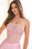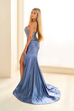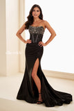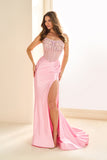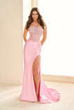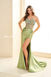 Elevate your prom look with the Ellie Wilde Prom Style EW36002! Made of Novelty Metallic Stretch Knit, the corset bodice features delicate stone accents and intricate beading. The lace-up back and separate spaghetti straps allow for a customizable fit, making you feel confident and beautiful all night long.