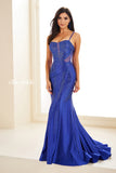 Stretch, shine, and sparkle in this Ellie Wilde Prom Style! The smooth and flexible fabric hugs your curves, making you feel confident and comfortable all night long. With delicate stone accents and a mesmerizing lace-up back, this dress is sure to make you stand out on the dance floor. Don't miss out on this elegant and alluring look!