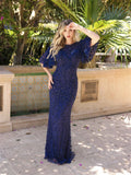 Chic beaded mothers dress with high neckline and gorgeous sleeves.